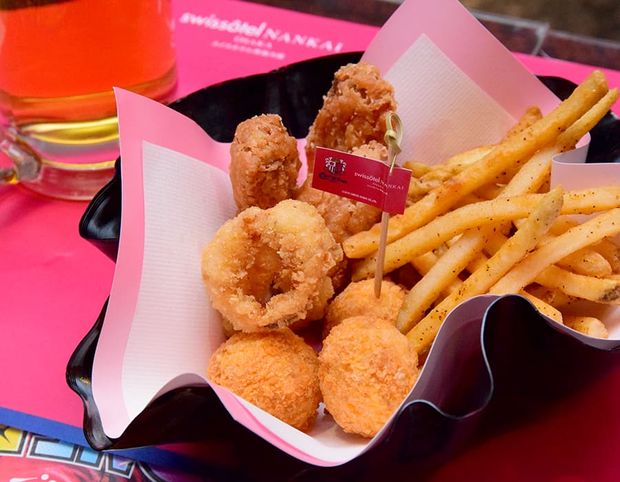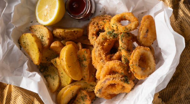 1ドリンク +フード4品セット(ケイジャンフライドポテト・カラマリ・チキンウィング・タコスボール)