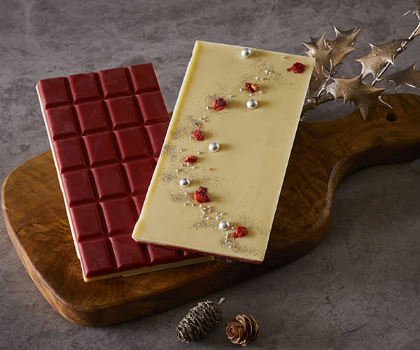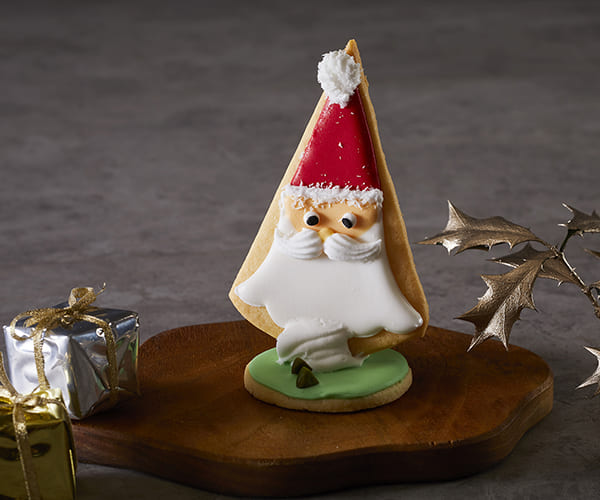 白を基調にしたシンプルで華やかなデザインの中には、チョコレートの帽子を外すとサンタクロースが顔をのぞかせる、心弾むサプライズも。